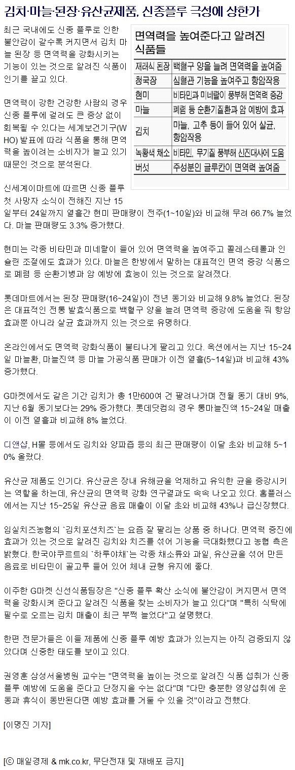 [¸ÅÀϰæÁ¦] ±èÄ¡, ¸¶´Ã, µÈÀå, À¯»ê±ÕÁ¦Ç°, ½ÅÁ¾ ÇÃ·ç ±Ø¼º¿¡ »óÇѰ¡!